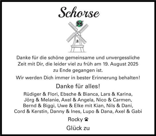 fassungslos und tief betoffen haben wir die Traueranzeige in der Zeitung gelesen. Wir wünschen Ihnen / Euch alle Kraft diese Welt, um diesen schweren Verlust zu tragen. Wir hoffen so sehr, dass all die gemeinsamen Erinnerungen Ihnen / Euch dabei helfen und ein wenig Trost spenden können. Wir sind in Gedanken ganz fest bei Ihnen / Euch.