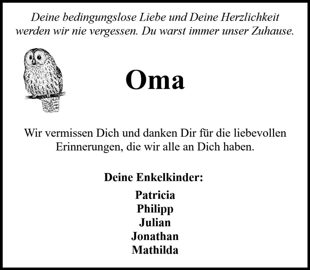 in diesen Tagen fühle ich mit Ihnen und wünsche Ihnen von Herzen, dass Sie aus den glücklichen Erinnerungen Kraft schöpfen, um positiv in die Zukunft zu gehen. Diese Gedenkseite möge Ihnen dabei helfen, Ihre Trauer zu teilen und das Andenken gemeinsam wachzuhalten.