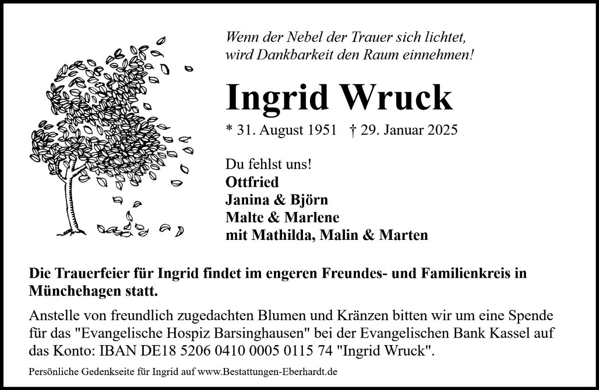 über das Ableben von Ingrid sind wir sehr bestürzt.